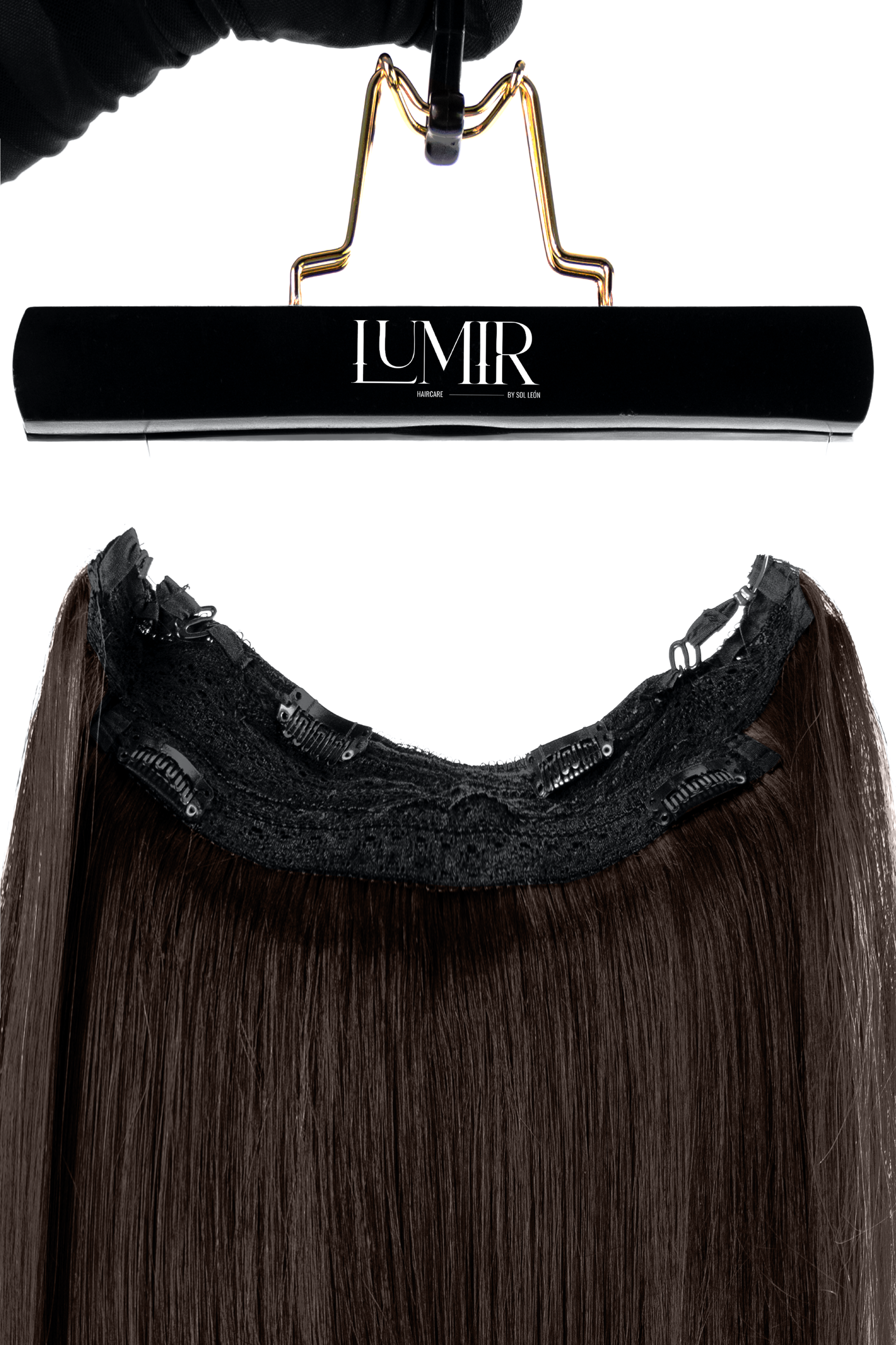 Designed to instantly transform your look, our HALO extensions are the perfect fusion of sophistication and comfort. Crafted with 170 grams of 100% human hair, sourced from the finest origins, they deliver a silky, natural finish and the highest quality available on the market.