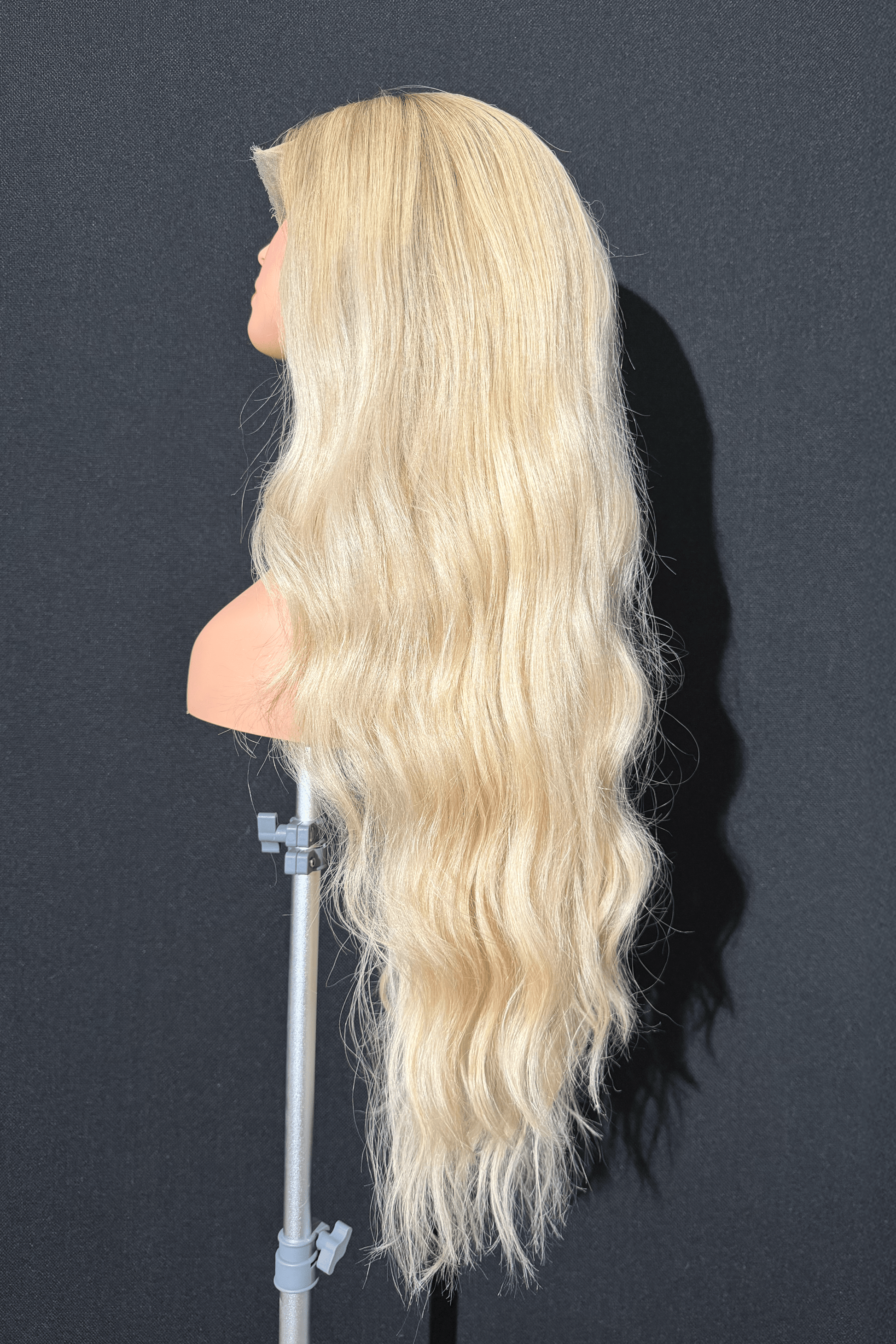 CRAFTED WITH 100% NATURAL HAIR AND ACCOMPANIED BY LUXURY ACCESSORIES, KENIA IS GOLDEN LIGHT TURNED INTO ELEGANCE. HER BLONDE TONE RADIATES WARMTH, WHILE HER 33 INCHES OF NATURAL WAVES FALL WITH GRACE AND PRESENCE. KENIA IS, SIMPLY, A GESTURE OF INTIMATE SOPHISTICATION.